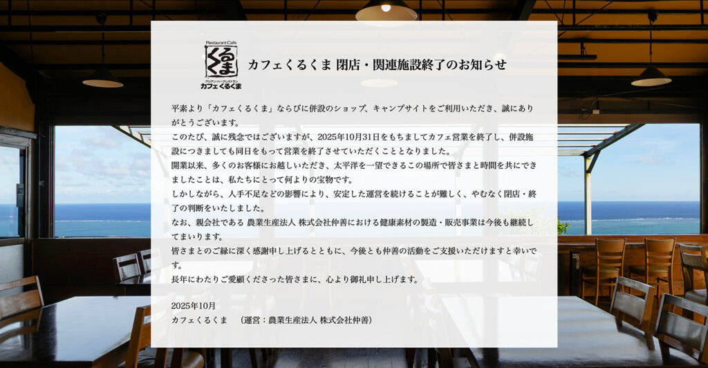 沖縄のカフェくるくまが10月いっぱいで閉店するらしい(カフェくるくま公式サイト)