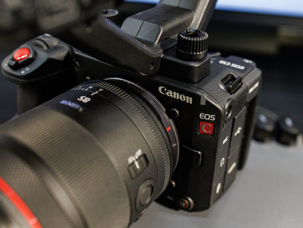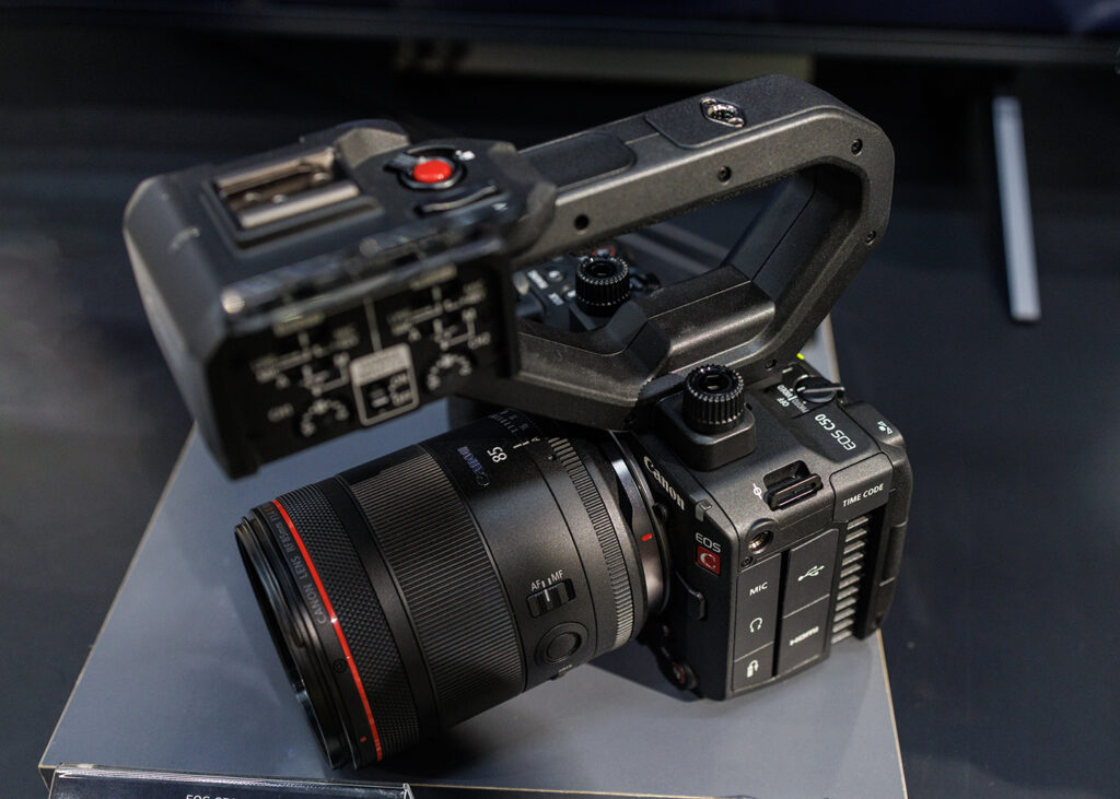 EOS C50はハンドルユニット装着状態での試用で、外した状態での重量感は試せませんでした。このC50にもRF85mm F1.4Lが装着されていました。