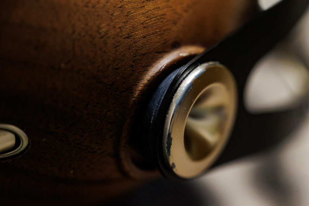 ウオールナットのハウジングと金属で構成された球体は、美しく、質感が素晴らしい。ちなみにプラスティックと接着剤は一切使っていないのがポリシーらしいです。