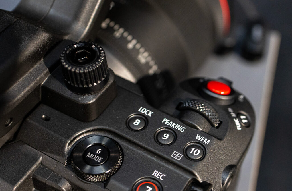 キヤノン EOS C50をタッチ&トライしたときのブログでも書きましたが、シャッターボタン前縁のズームレバー、ハンドルユニットにあるシーソーレバーはRF-S14-30mm F4-6.3 IS STM PZおよびパワーズームアダプターを装着したRFレンズではズームレバーとして機能するだけでなく、単焦点レンズ(いや、ズームレンズでもOKか?未確認です)使用時にはデジタルズームの操作系としても機能します。