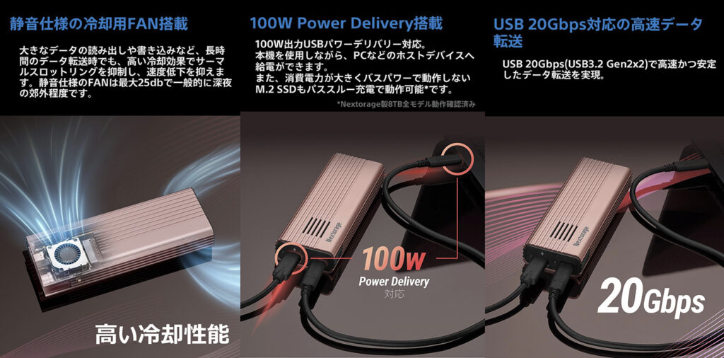 Nextorage ネクストレージ USB3.2 Gen2x2 20Gbps M.2 SSD、エンクロージャー、外付けケース,冷却ファン内...
