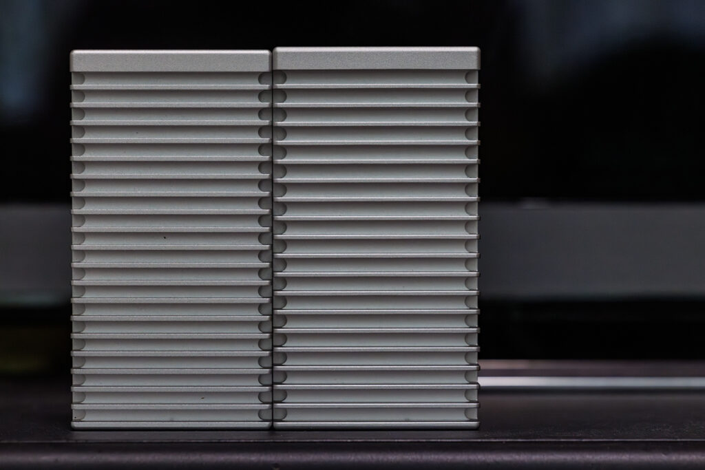 ぱっと見、同じ筐体に見えますが・・・良く見ると放熱板(フィン)の数が異なります。