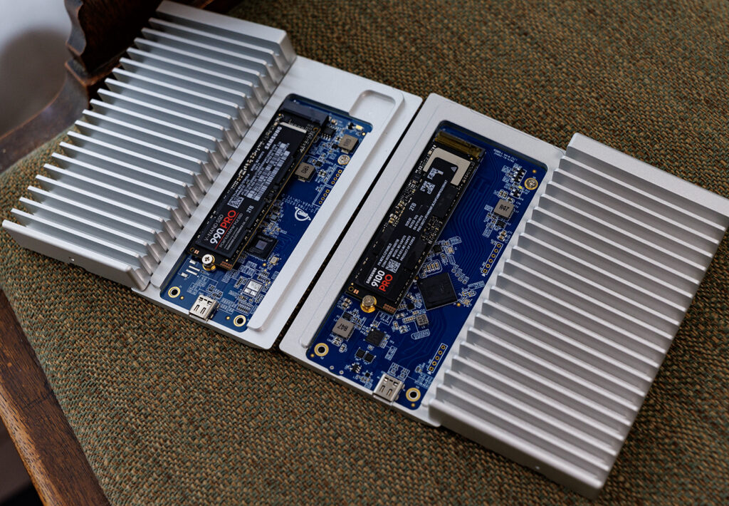 それぞれに Gen4 SSD(SAMSUNG 990 PRO)と Gen5 SSD(SAMSUNG 9100 PRO)を載せ、さらに入れ替えて速度を計測してみました。