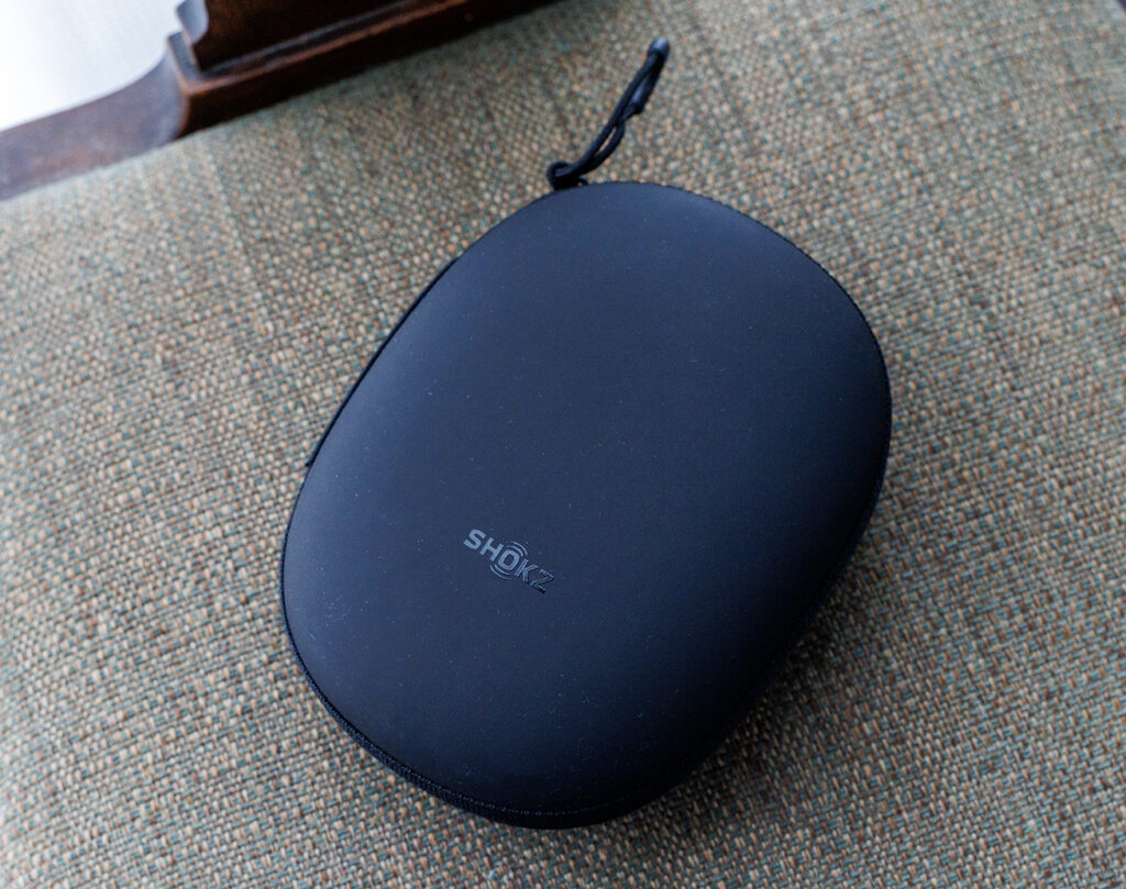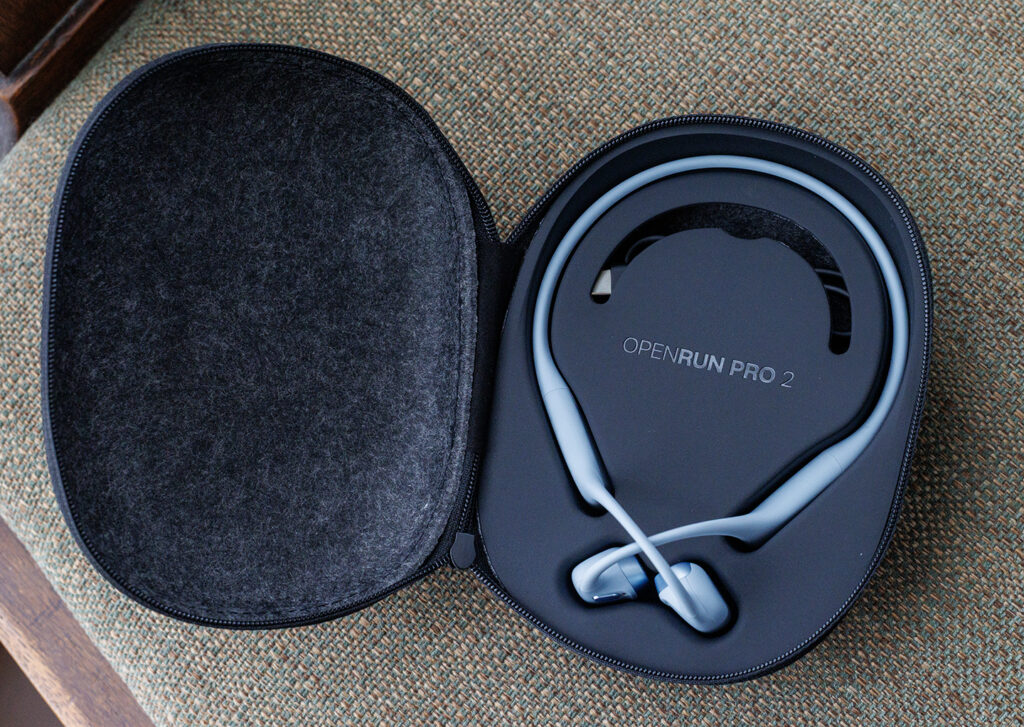 このキャリングケース、質感も良く、OpenRun Pro 2にピッタリ合わせた格納部があり、その下に充電用USB-Cケーブルも格納できる非常に良く出来たものです。持ち運び時に製品を保護するという意味では最適でしょう。・・・なのですが・・・。