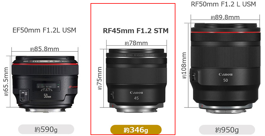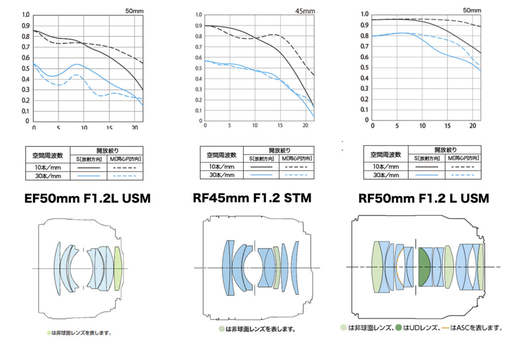 RF45mm F1.2 STMの製品ページに置かれた図を転載(順番を入れ替えています)