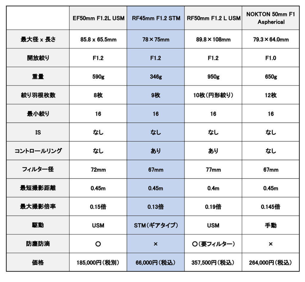 そこに、同じ(ような)焦点距離に、F1.2という(現行純正レンズ最大の)明るさと、6.6万円というRFレンズらしからぬ価格で投入されたのだからそりゃあ、そそられます。