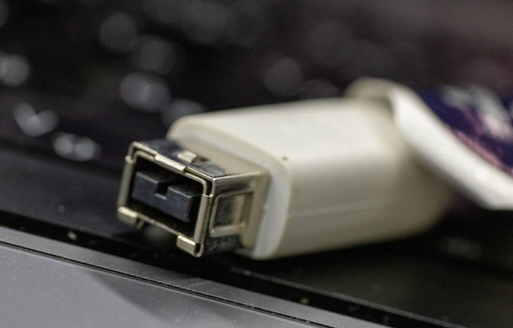 i.LINKは4ピンでFireWireは6ピンでした。(違いは電源供給とリピーター機能の有無でしたっけ)写真は9ピン化して高速になったFireWire 800。