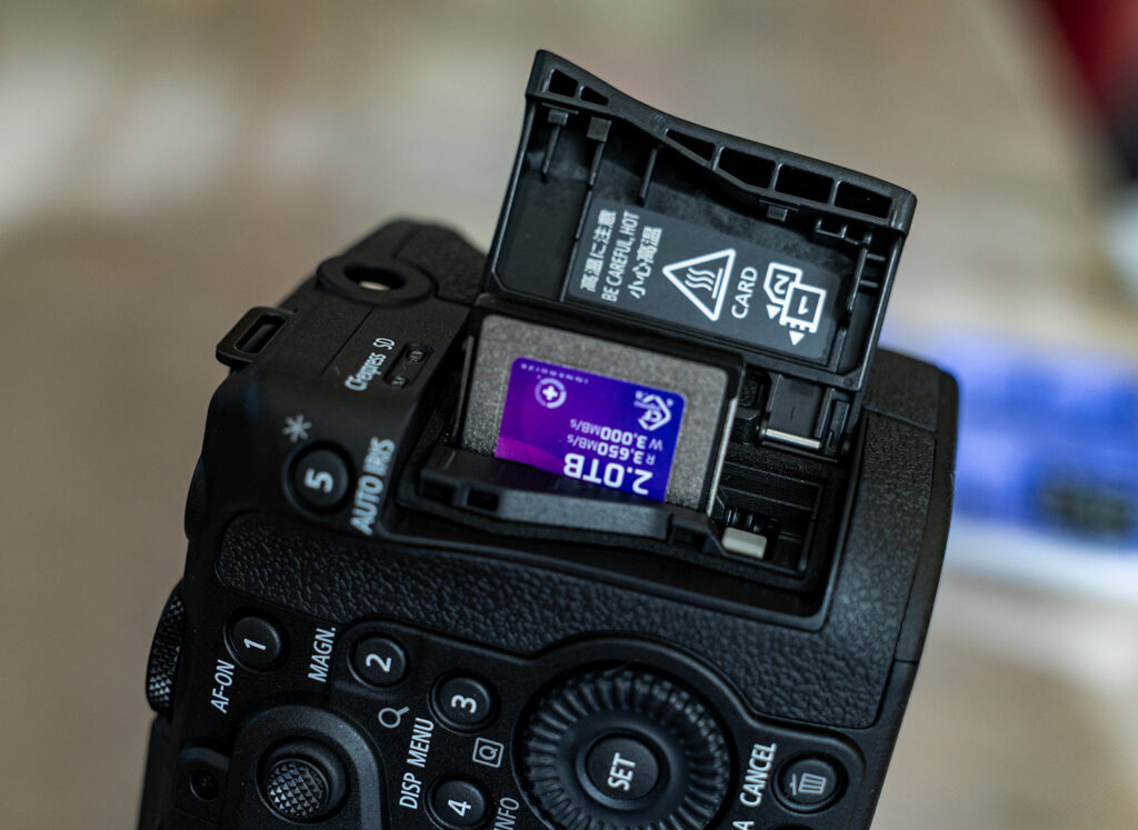 これはアーキテクチャをかなり共通するEOS R6 Mark IIIも同じなので、本気の動画をやる、とかスチルもSDメイン、という場合はV90クラスを買う方が安心と思います。