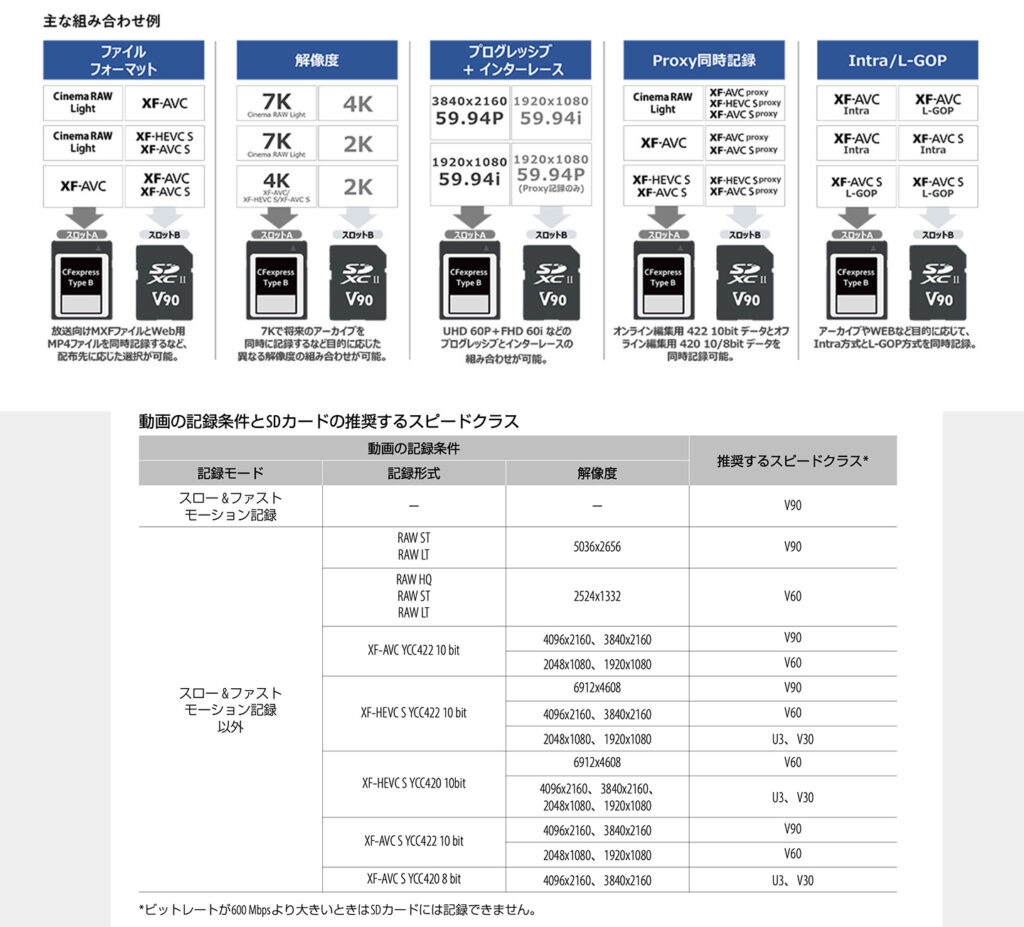 EOS C50、CFexpressにCinema RAWとか7Kオープンゲート記録しつつ、SDに軽量(?)なデータを同時記録できるのですが、この時にSDXCにV90クラスを要求するのですね。