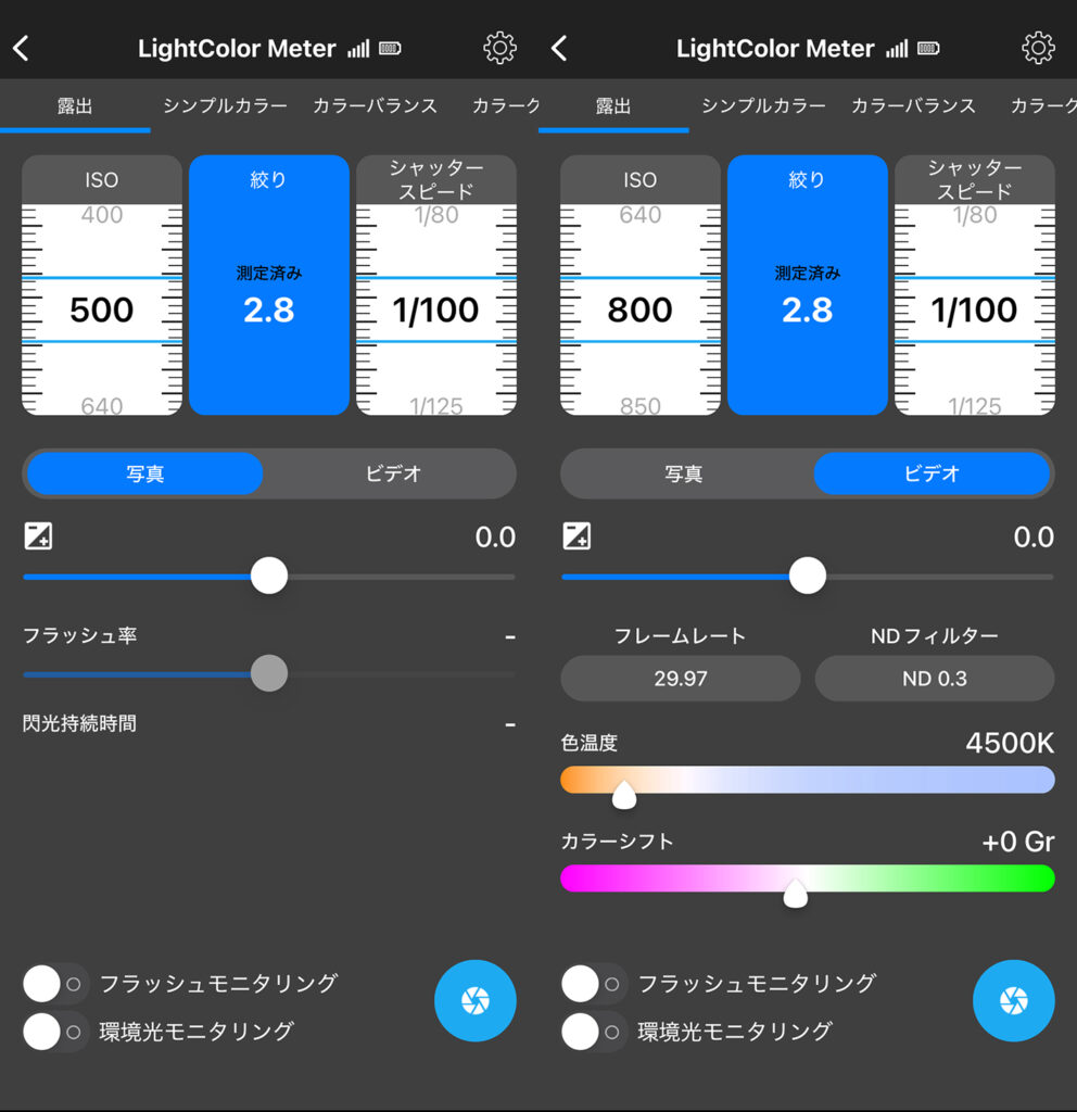 スチルの露出、色温度のリアルタイム計測はもちろん、動画用の計測も可能で、一桁高価い他社製露出計、カラーメーターと同等の精度を誇ります。