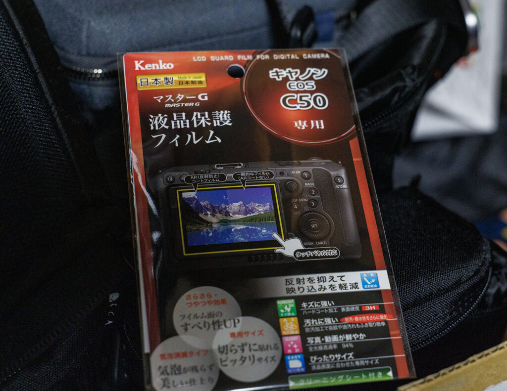 EOS C50を受け取った帰り道、やっぱり液晶保護フィルムは貼っておこうと思い立って検索。