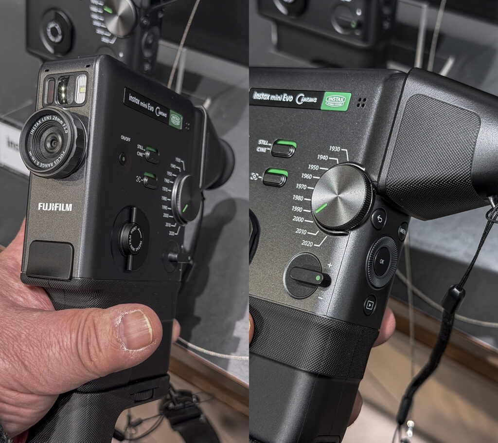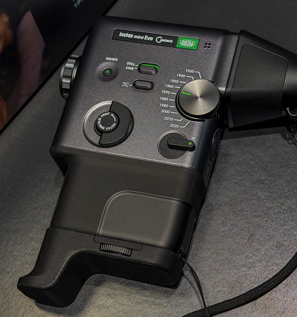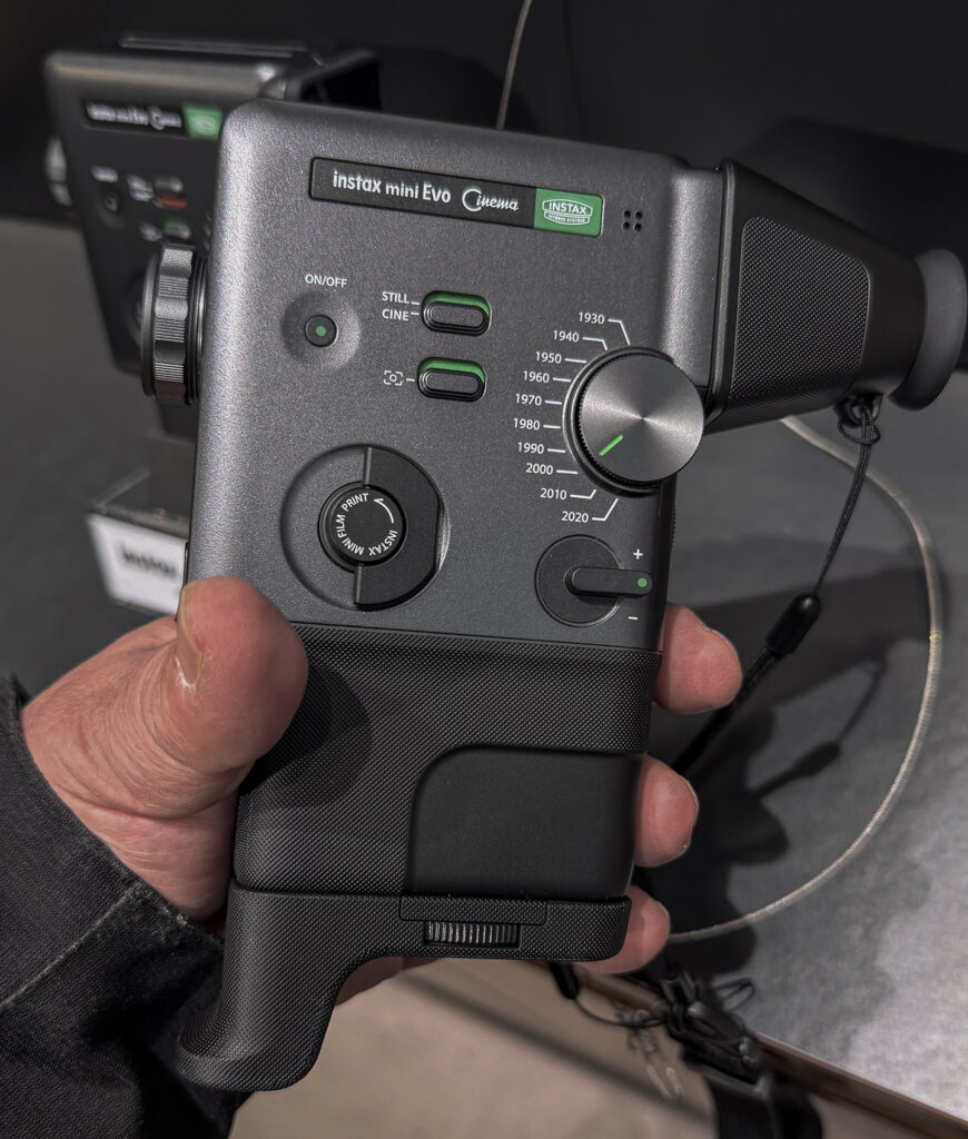 アイディアも製品デザインも流石だなあと思いました。富士フィルムの8mmフィルムカメラ「風」チェキ、instax mini Evo Cinema。