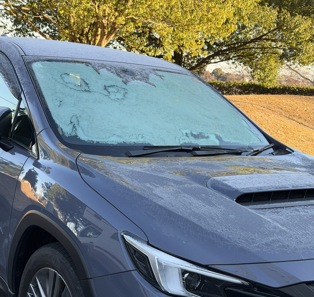 この数日、おそろしく寒いですね。先日、早朝出勤の必要があって朝、クルマを出そうとしたらこんな感じ。