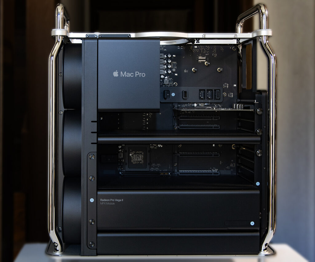 PCIeカードスロットやHDDベイなどの拡張性、強力な電源ユニットがMac Pro の唯一無二な特徴でしたが、それを必要とするユーザーは多くなかったというのが本当のところでしょう(写真はMac Pro 2019です)。